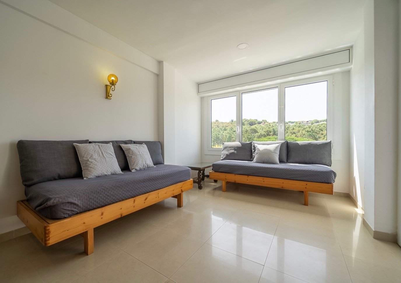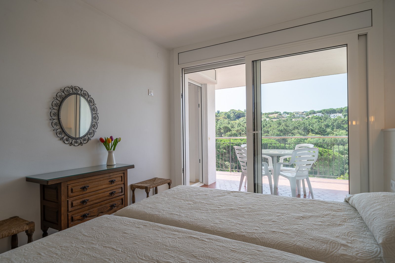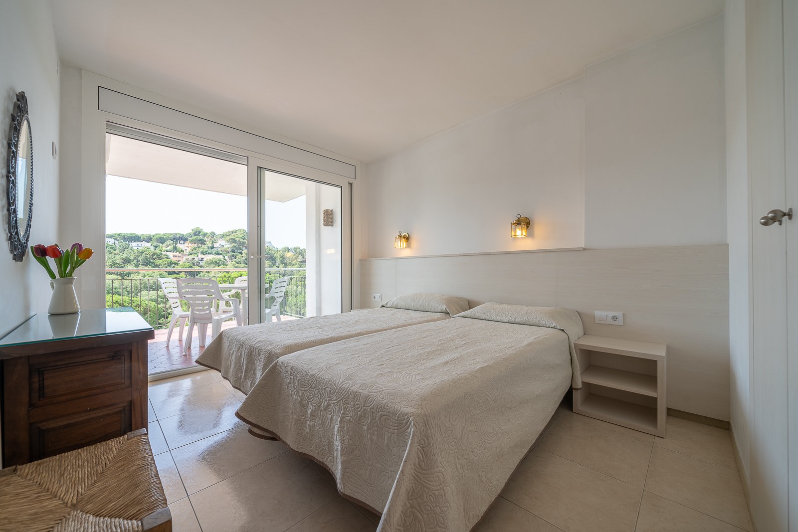 Apartamentos para 6 personas. Son amplios y luminosos, con vistas a una zona verde y montaña, algunos con vistas al mar. Disponen de una gran terraza privada. Se componen de dos habitaciones dobles con 2 camas, salón comedor con TV, cocina y baño con ducha. En el salón comedor hay 1 cama individual o un sofá cama para la quinta persona. La cocina dispone de los utensilios necesarios. Hay microondas, cocina eléctrica, nevera, congelador, tostadora y cafetera italiana.